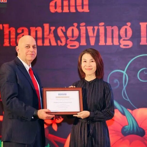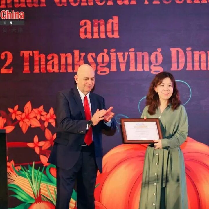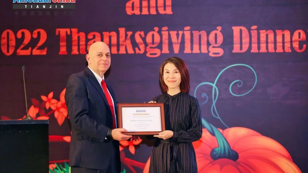 During the Thanksgiving style meal, Williams shared an overview of the Chapter’s achievements in 2022. He highlighted engagement with local government and expressed thanks to the outgoing 2021-2022 Executive Committee members. Michael Hart, President of AmCham China joined the event virtually to announce the newly elected 2023-2024 Tianjin Executive Committee Chair, Co-Vice Chairs, and Committee Co-chairs.