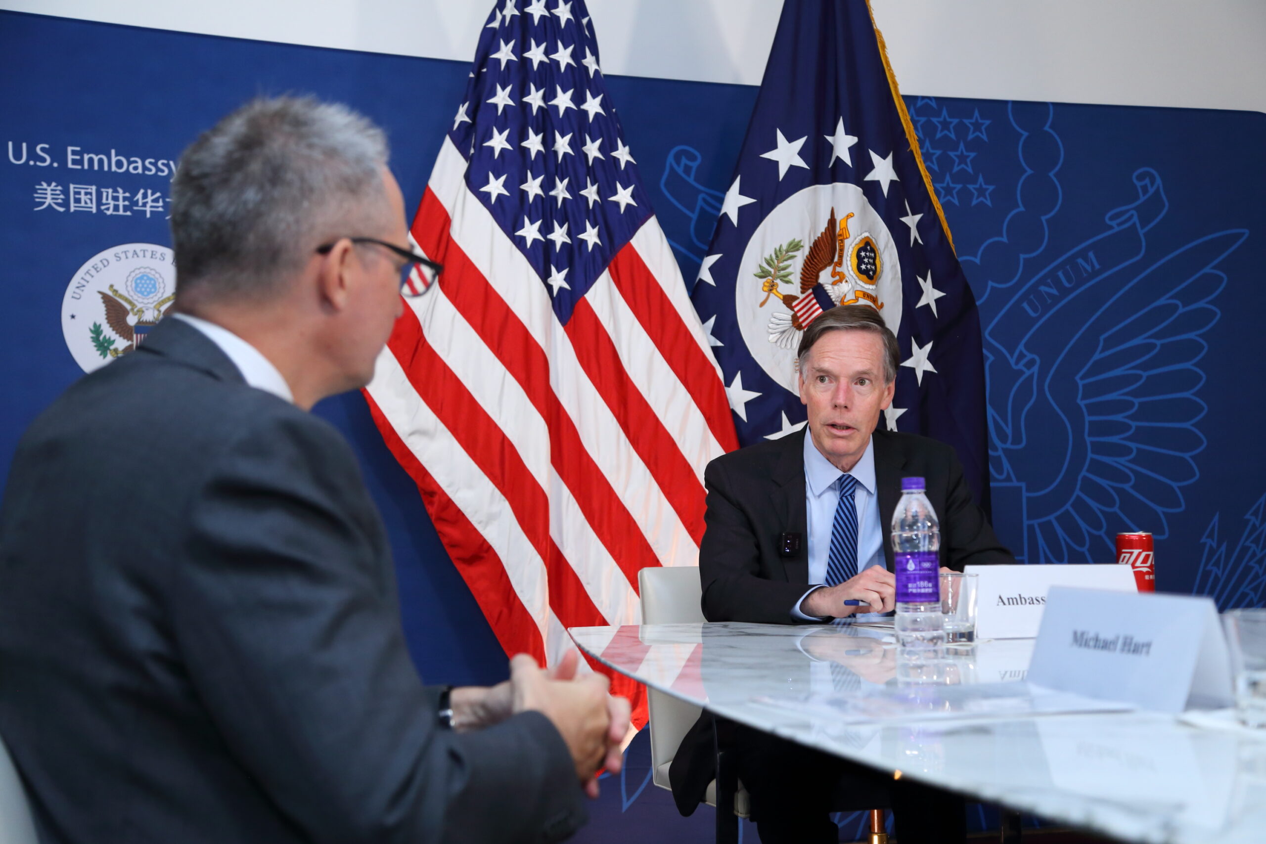 AmCham China President Michael Hart and Ambassador Burns in discussion at the US Embassy in Beijing