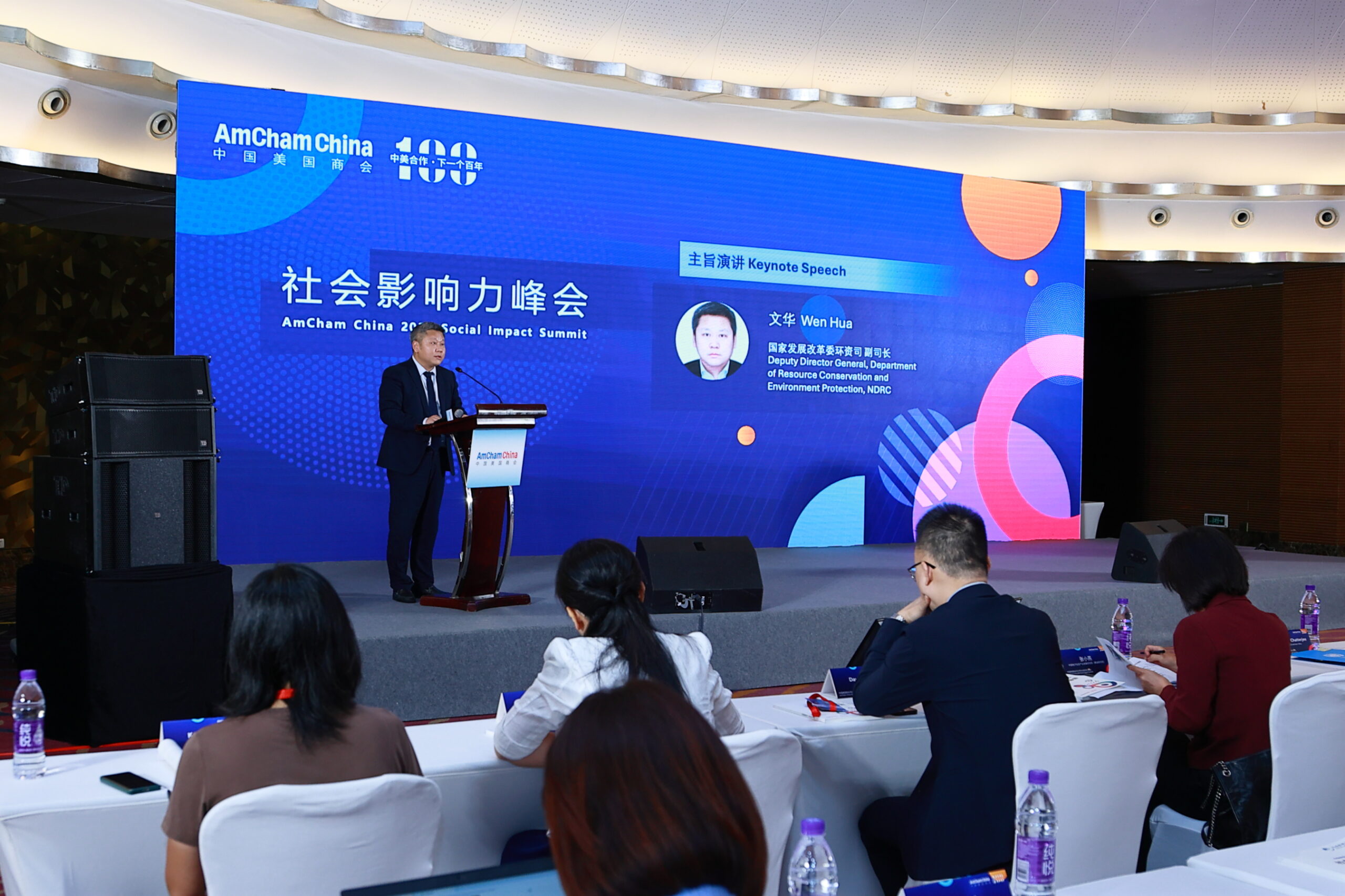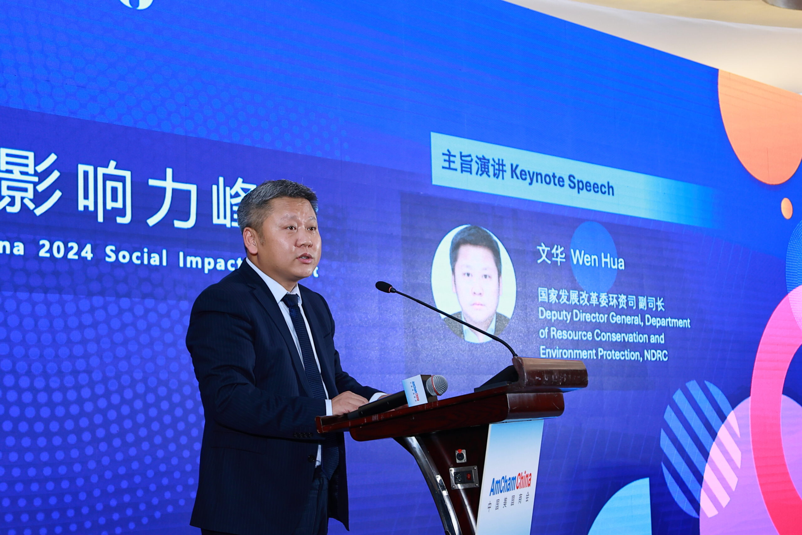 Wen Hua (pictured above), Deputy Director General of the NDRC, delivered the first keynote speech, noting China’s strategic plans for carbon peaking and neutrality, supported by over 30 key sectoral initiatives. He highlighted progress in renewable energy, industrial transformation, and the building and transportation sectors. Wen concluded with three suggestions for US-China cooperation in green trade, technology, and market collaboration, calling for businesses from both nations to enhance partnerships in new energy and environmental protection to drive the global green transition.