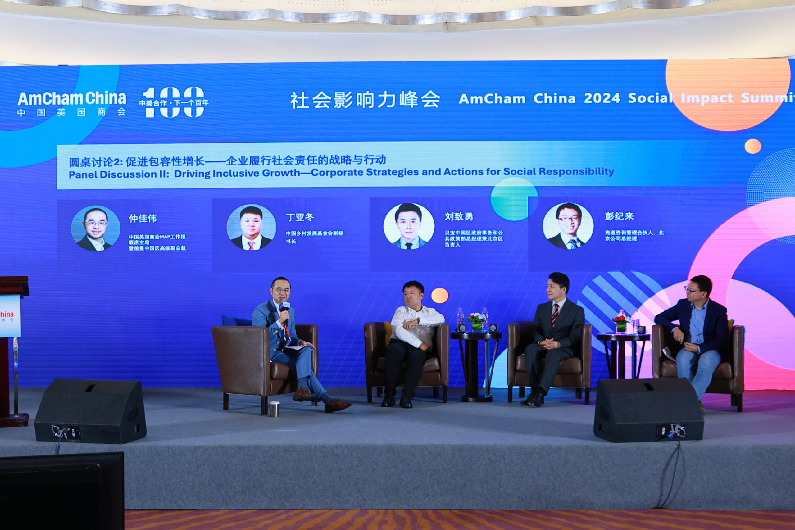 The second panel, titled “Driving Inclusive Growth: Corporate Strategies and Actions for Social Responsibility,” was moderated by Peter Zhong, Senior Vice President at Edelman China and Co-Chair of AmCham China’s Marketing, Advertising, and PR Committee. Panelists included Ding Yadong, Deputy Secretary General of the China Foundation for Rural Development; Justin Liu, Senior Director and Head of Greater China Government Affairs and Public Policy & Beijing Site Leader at PayPal; and Peng Jilai, Partner and General Manager of the Beijing Office at SynTao Consulting. The discussion highlighted corporate collaborations with social organizations to promote social equity and reduce development disparities in China.