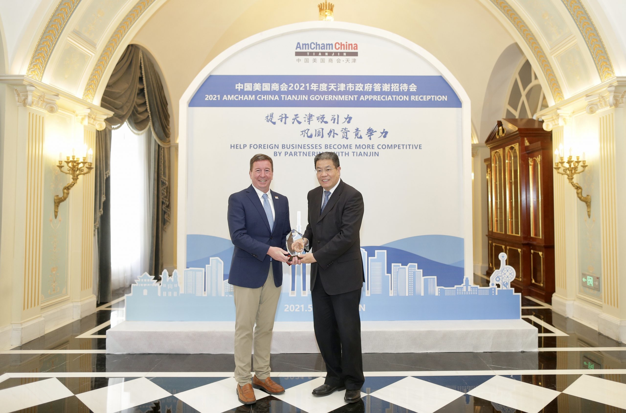 On May 25, AmCham China Tianjin Chapter held its annual Tianjin Government Appreciation Dinner, capping an afternoon of activities that included a dialogue with the Tianjin Municipal People’s Government.
